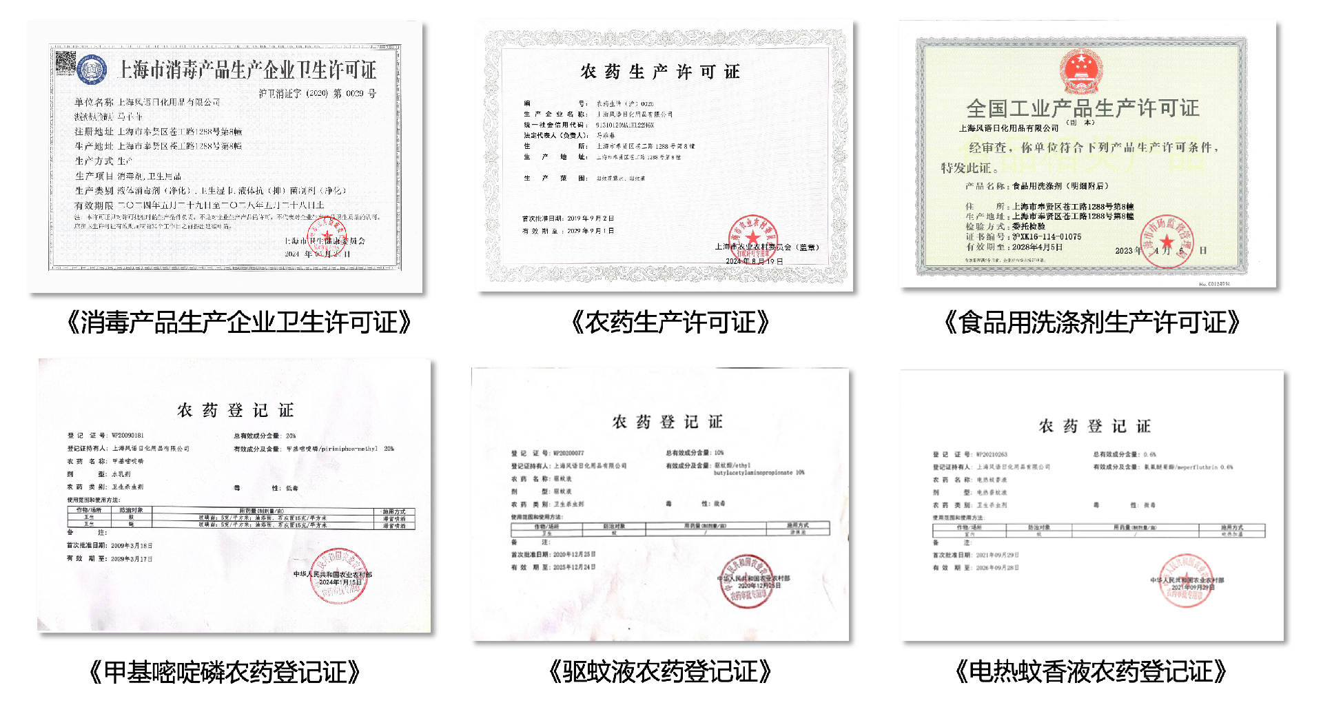 公司于2016年12月基本完成一期主体工程的建设,2017年9月取得奉贤区环保局的建设项目竣工验收批复。2021年10月,完成二期环评竣工验收,项目包含卫生用品、洗涤剂、宠物用品、家用卫生杀虫剂等产品。已办理各种行政许可手续:《农药生产许可证》、《消毒产品生产企业卫生许可证》;《驱蚊液农药登记证》、《甲基嘧啶琳农药登记证》、《电热蚊香液农药登记证》、《食品用洗涤剂生产许可证》。